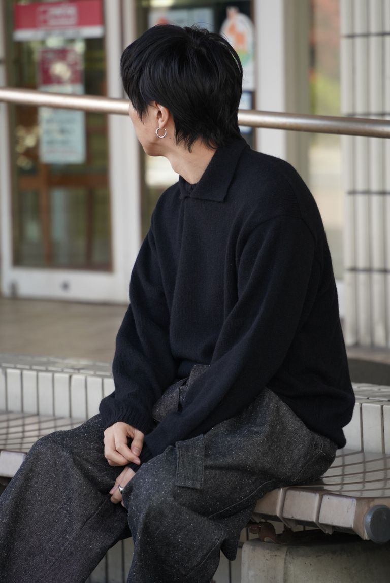 ALPACA POLO COLLAR KNIT SHIRT(BLACK)